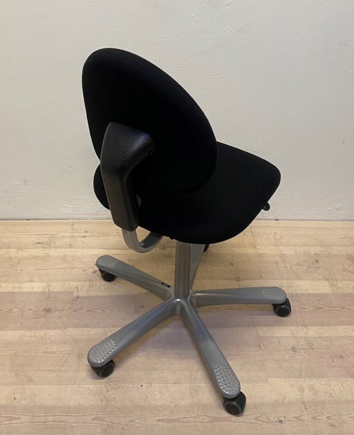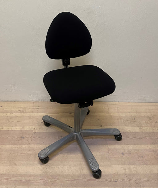 Nypolsteret Håg Capisco 8106 Ergonomisk kontorstol / sadelstol.Stolen har gråt stel og er nypolstret med sort Advantage stof. Bemærk! Varen er brug...