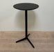 Højt cafebord med Ø60 cm. Sort linoleum borplade monteret på sort stel.