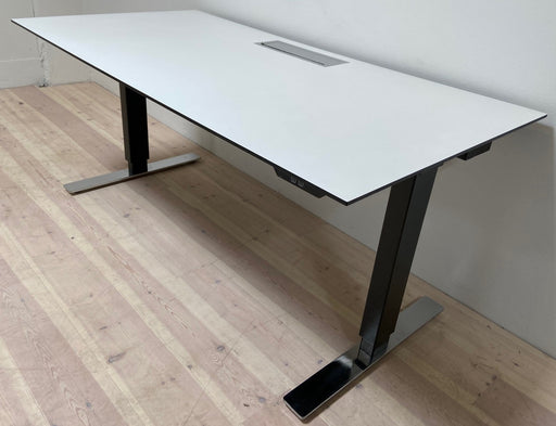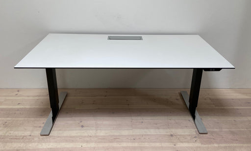 Gubi GOS2 el hæve/sænkebord med 170x85 cm. Hvid laminat bordplade med sort faset kant og integreret kabelklap for kabelgennemgang. Bordet er inkl. ...