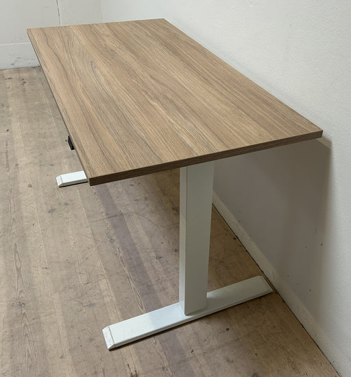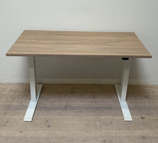 El hæve sænkebord med 120x60 cm. Bordplade i Egetræs laminat (melamin). Monteret på hvidt 1-motor stel.Et flot og budgetvenligt skrivebord som egne...