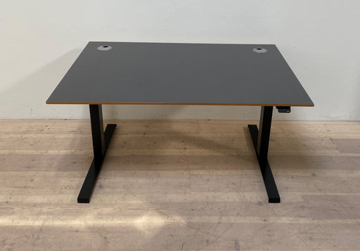 Dencon el hæve/sænkebord med 130x80 cm. Sort linoleum bordplade monteret på sort stel. Bordet har integreret Powerdot/stikdåse samt kabelbakke. (de...