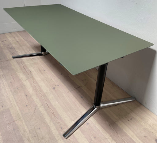 Fumac Switch el hæve/sænkebord med NY 160x80 cm. OIiven Grøn linoleum bordplade monteret på flot designer stel. Bemærk! Bordpladen er ny og stellet...