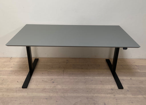 Dencon Delta el hæve/sænkebord med NY 160x80 cm. Grå linoleum bordplade monteret på sort stel. Stellet er udstyret med kvalitetsmotor fra Linak. Be...