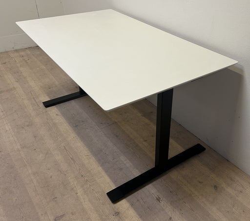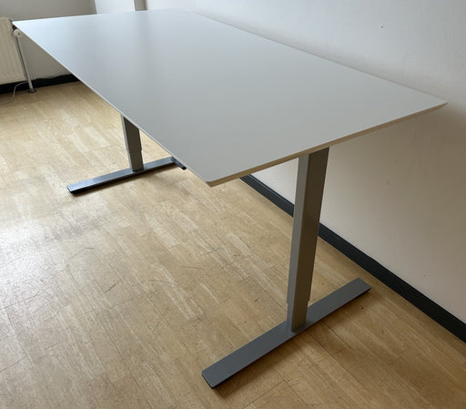 Scan Office el hæve/sænkebord med 160x90 cm. Hvid laminat bordplade monteret på antracit gråt stel. Bemærk! Varen er brugt. Almindelige brugsspor k...