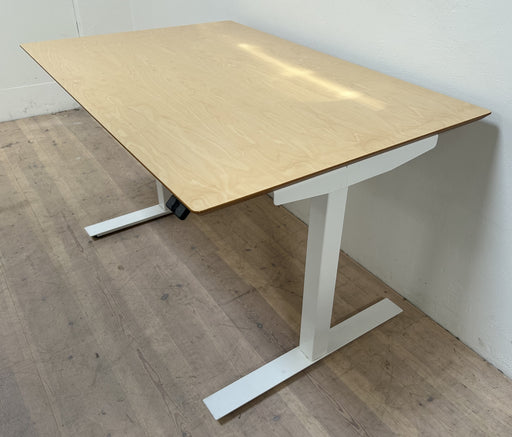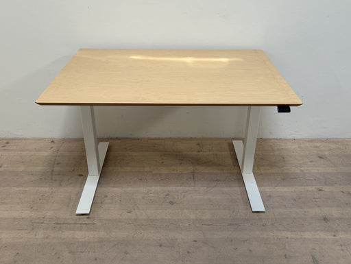 Fumac Inline el hæve sænkebord med 120x80 cm. Ahorn laminat bordplade monteret på hvidt 2-motors stel. Bemærk! Varen er brugt. Almindelige brugssp...