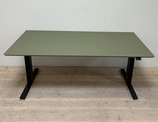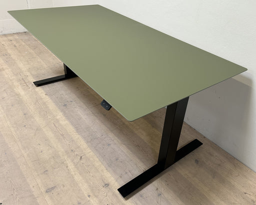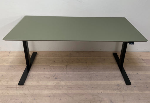 Martela 2-motors el hæve/sænkebord med NY 160x80 cm. Oliven grøn linoleum bordplade monteret på sort stel. Bemærk! Stel er brugt og bordpladen er ny.