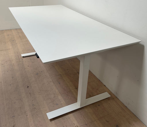 Fumac Inline el hæve/sænkebord med hvid laminat bordplade og hvidt stel. Bemærk! Varen er brugt. Almindelige brugsspor forekommer. Bordet leveres a...