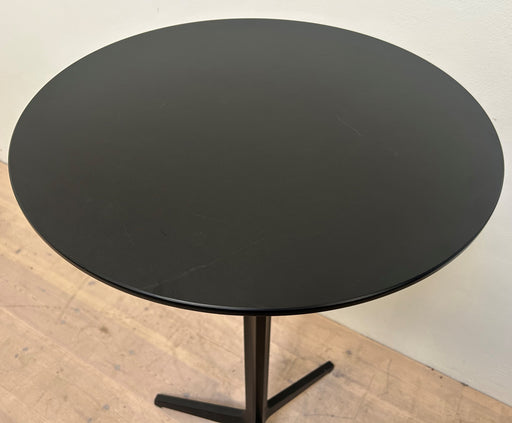 Montana Djob Højbord / højt cafebord med Ø70 cm. Sort linoleum bordplade monteret på sort stel. Bordet er 106 cm. Højt. Bemærk! Varen er brugt. Alm...