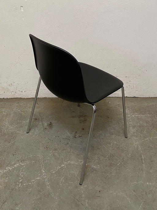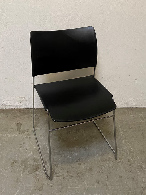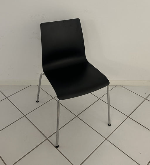 Savir kantinestol / mødestol i formspændt sort plast. Stolen kan stables. Bemærk! Varen er brugt. Almindelige brugsspor forekommer.