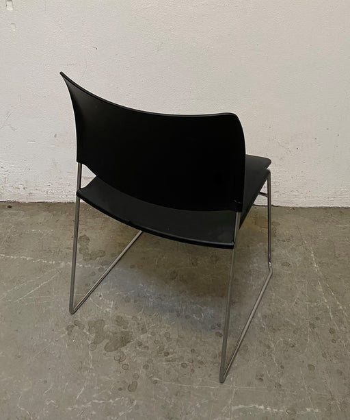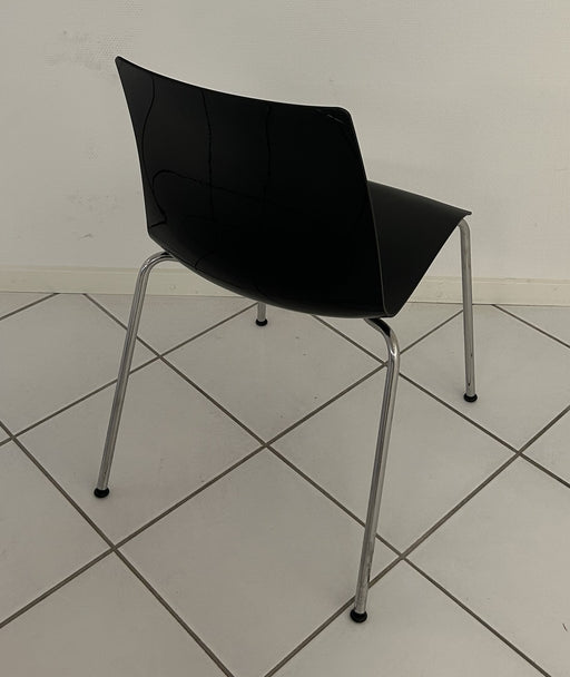 Senator kantinestol med krom stel og sæde i sort plast. Bemærk! Varen er brugt. Almindelige brugsspor forekommer.