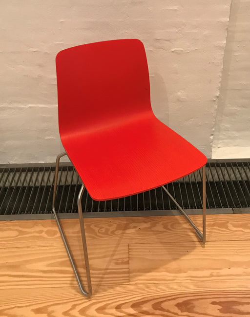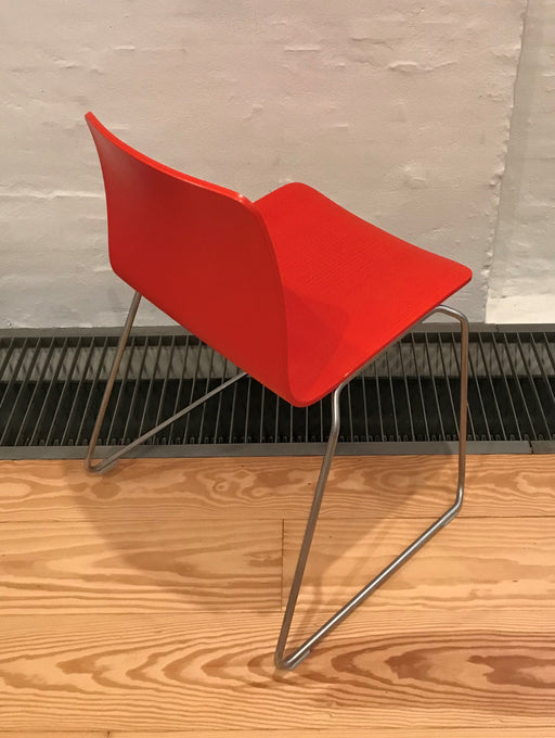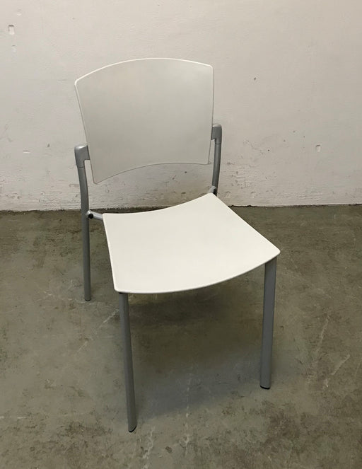 Formula italiensk designet kantinestol med sæde i helstøbt plast.Stolen kan stables. Bemærk! Varen har været brugt i udstilling og er derfor som ny.