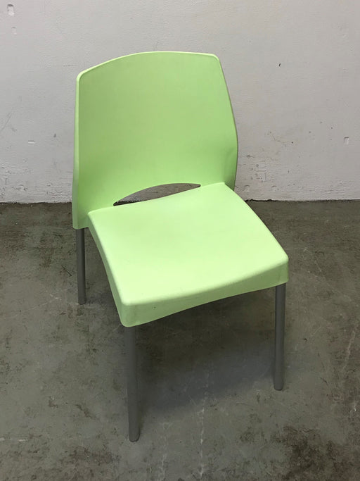 PLOP kantinestol / stol i lime grøn plast. Stolen kan stables og tåler udendørsbrug. Bemærk! Varen er brugt. Almindelige brugsspor forekommer.
