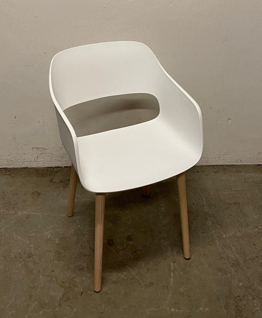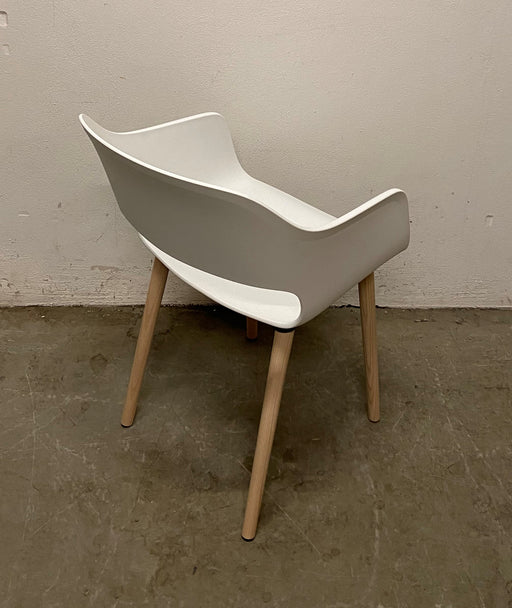 Pedrali Babila 2755 mødestol / konferencestol / spisestol med mat hvid helstøbt sæde monteret på egeretæsben. Bemærk! Varen har være brugt som uds...