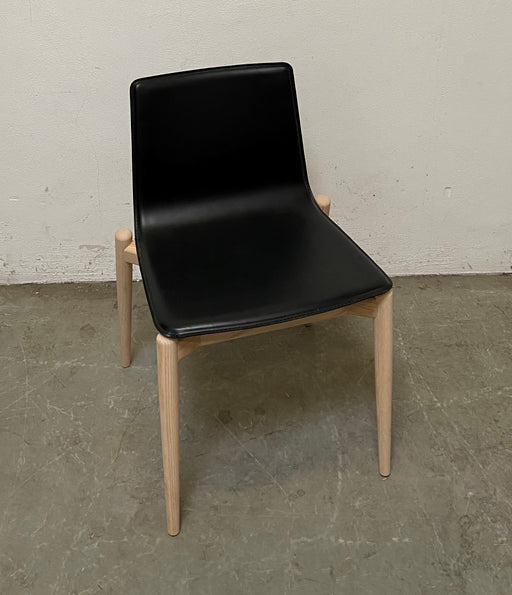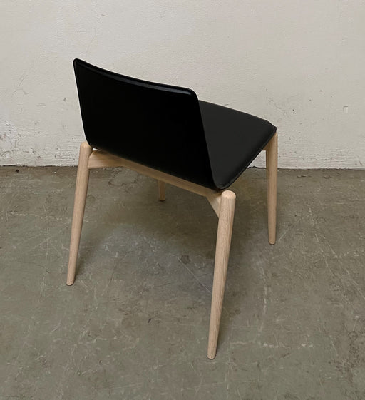 Pedrali Malmö 392 mødestol / konferencestol / spisestol med egetræs stel og polstring i sort læder. Bemærk! Varen har været brugt som udstillingsmo...