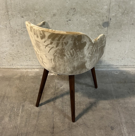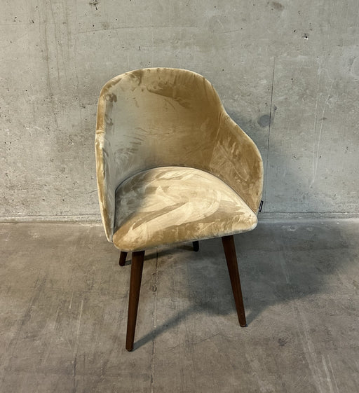 Sofacompany Vica spisestol / mødestol / konferencestol polstret i beige velour og med ben i valnød. Bemærk. Varen er brugt. Almindelige brugsspor k...