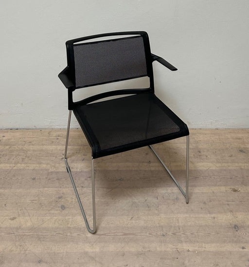 Wilkhahn Aline 230/2 Kantinestol / konferencestol med armlæn. Stolens sæde og ryglæn er lavet af et kraftigt plastik net som giver et let og elegan...