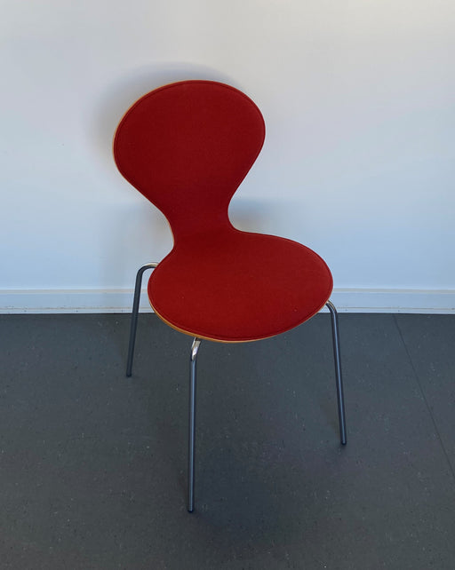 Danerka Rondo skalstol / spisestol / kantinestol med rød forside polstring. Stolen kan stables og er designet af Erik Jørgensen. Bemærk! Varen er...