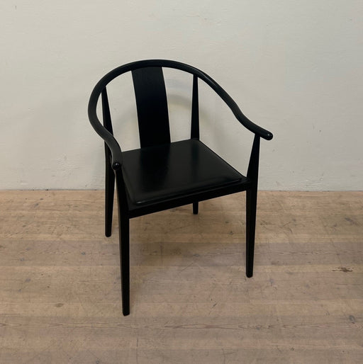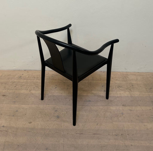Rumas Log mødestol / konferencestol med armlæn. Stolen er i sort lakeret træ med sort sædepolstring. Bemærk! Varen er brugt. Almindelige brugsspor ...