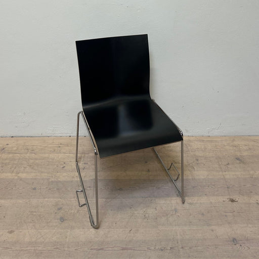 Engelbrecht Chairik Stabelstol / konferencestol / kantinestol i sort melamin og kant i krydsfinér. En god all-round stol som har en rengøringsvenli...