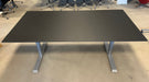 Mødebord / konferencebord med ny 180x90 cm. Sort linoleum bordplade og gråt stel.