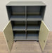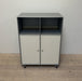 Sølv grå Montana kontorskab / kontorreol på hjul. Reolen har 2 rum og 2 store låger med lås.