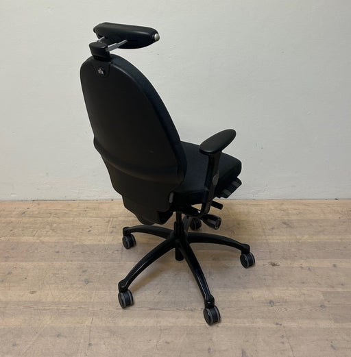 Håg H05 kontorstol nypolstret med sort Advantage stof. Stolen har mange indstillingsmuligheder som f.eks. Synkron vip og sæde- og rygregulering i s...