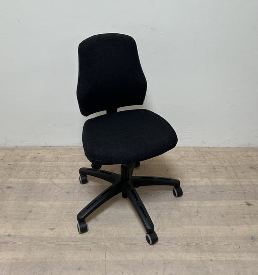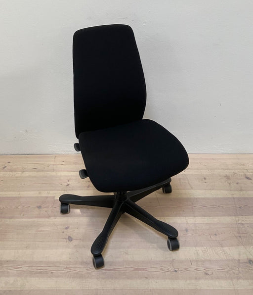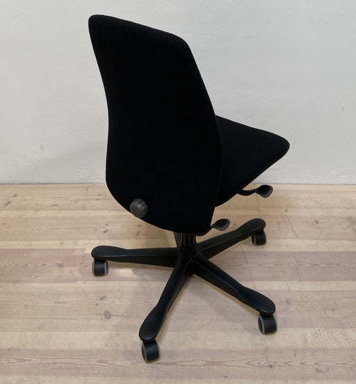 Sort Håg H04 4200 kontorstol upcyclet med NYT Ryglæn samt sæde i originalt sort Håg Cura stof. Stolen har mange indstillingsmuligheder som f.eks....