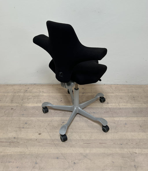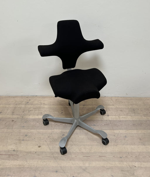 Nypolsteret Håg Capisco 8106 Ergonomisk kontorstol / sadelstol.Stolen har gråt stel og er nypolstret med sort Advantage stof. Bemærk! Varen er brug...