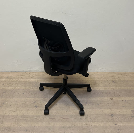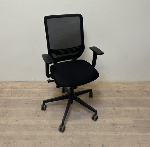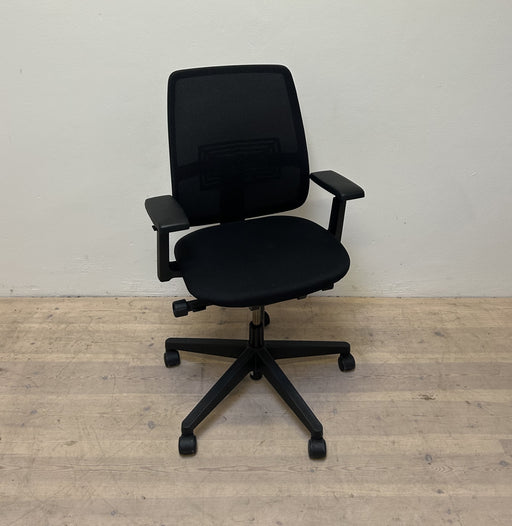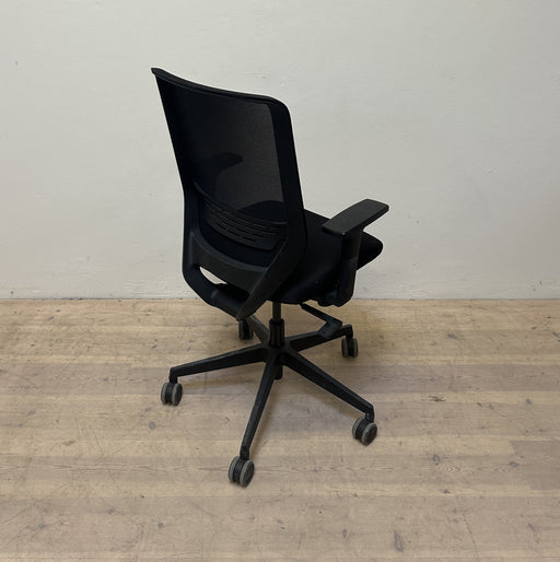 Steelcase kontorstol med armlæn og lændestøtte. Stolen har sort sædepolstring og åndbar mesh / net ryglæn. Bemærk! Varen er brugt. Almindelige brug...
