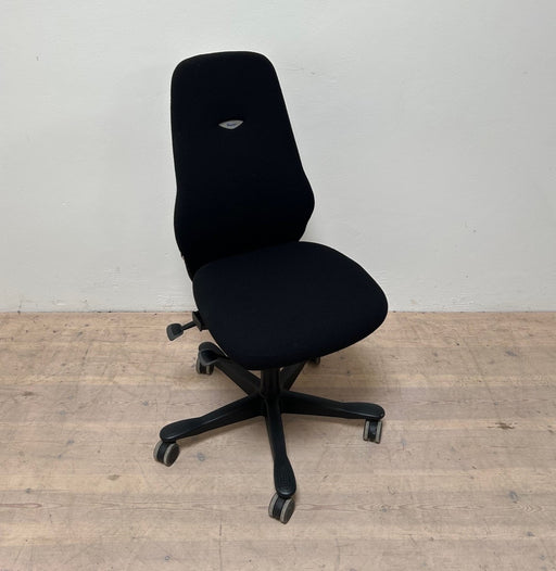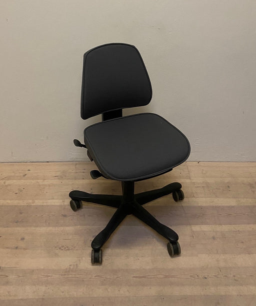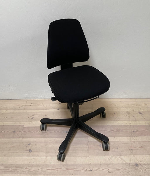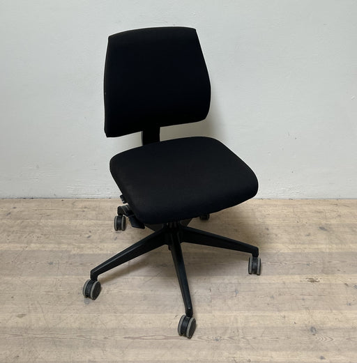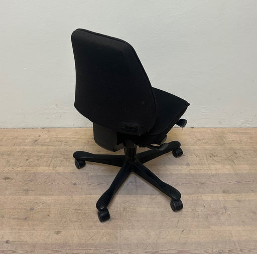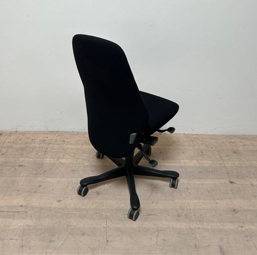 Håg H05 kontorstol nypolstret med sort Advantage stof. Stolen har mange indstillingsmuligheder som f.eks. Synkron vip og sæde- og rygregulering i s...