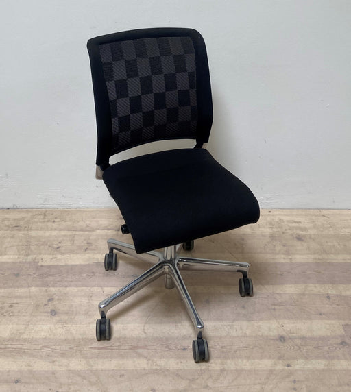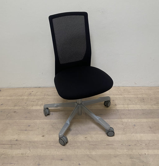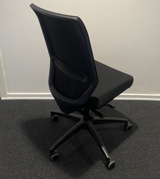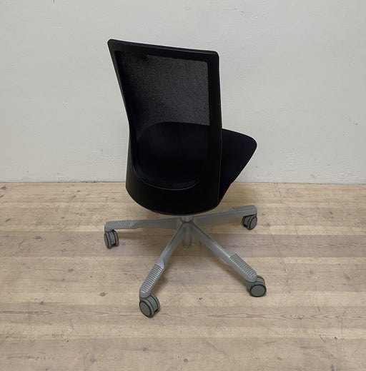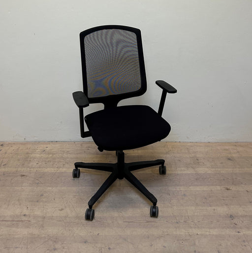 Interstuhl Xantos X142 kontorstol med sort polstret sæde og mesh ryglæn. Bemærk! Varen er brugt. Almindelige brugsspor kan forekomme.