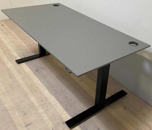 EFG el hæve/sænkebord med 150x75 cm. Bordplade i grå laminat monteret på sort stel. Bordet har integreret huller til kabelgennemgang. Bemærk! Varen...