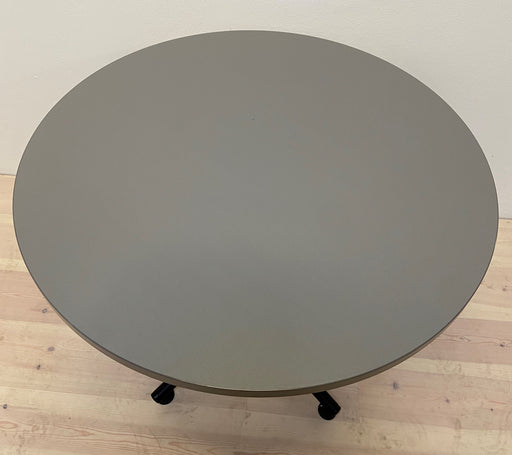 EFG cafebord med Ø90 cm. Grå laminat (melamin) bordplade monteret på sort stel. Bemærk! Varen er brugt. Almindelige brugsspor kan forekomme.