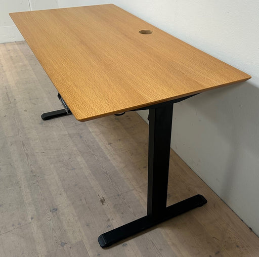 NYT Sort ErgoPro Hæve sænkebord stel sammensat med en brugt 140x70 cm. Egetræs laminat bordplade med faset kant og integreret kabelhul. Bordet har ...