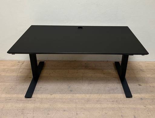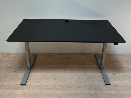 Scan Office el hæve/sænkebord med 140x80 cm. Sort linoleum bordplade monteret på antracit gråt stel. Bordet har integreret hul til kabelgennemgang....