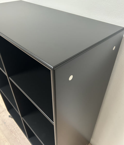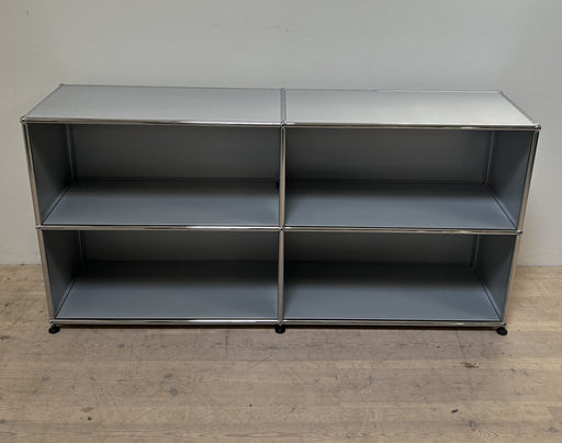 USM Haller kontorreol med 4 rum. Reolen er i Lys grå metal og har forkromede stålrør. Her får du et stilsikkert og robust designermøbel som giver e...