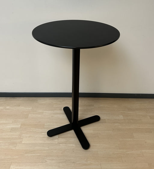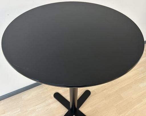 Montana Djob Højbord / højt cafebord med Ø70 cm. Sort linoleum bordplade monteret på sort stel. Bordet er 106 cm. Højt. Bemærk! Varen er brugt. Alm...