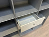Sølv grå Montana kontorskab / kontorreol på hjul. Reolen har 8 rum og 2 skuffer.