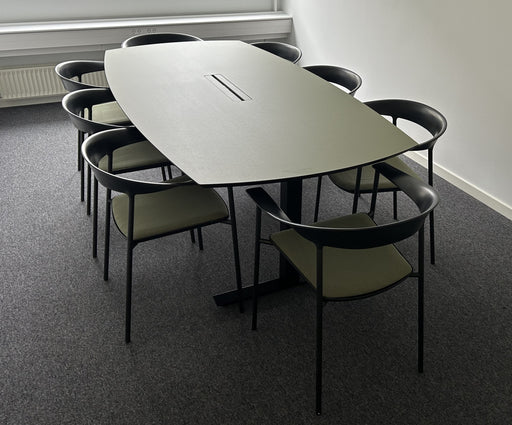 NYT Fumac Square mødebord / konferencebord med 220/110/90 cm. Bådformet Oliven grøn linoleum bordplade. Bordet er designet af Busk+Hertzog i et tid...