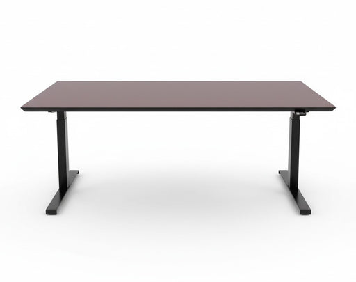 Fabriksnyt Linak Upgrade el hæve/sænkebord med linoleum bordplade i den rød/brune specialfarve Burgundy. Stellet er af den bedste kvalitet fra Lin...