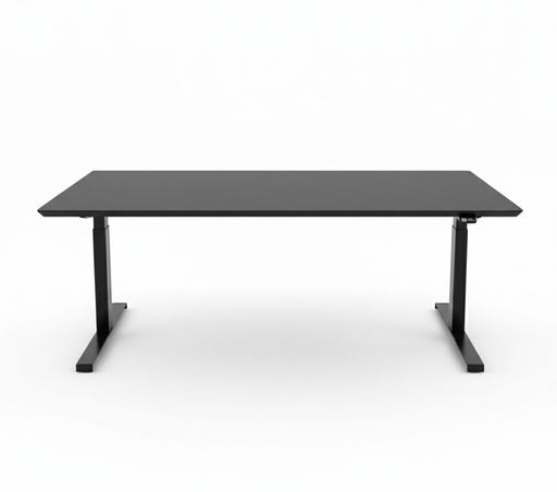 Fabriksnyt Linak Upgrade el hæve/sænkebord med sort linoleum bordplade og firkantet sort pulverlakeret stel. Stellet er af den bedste kvalitet fra ...