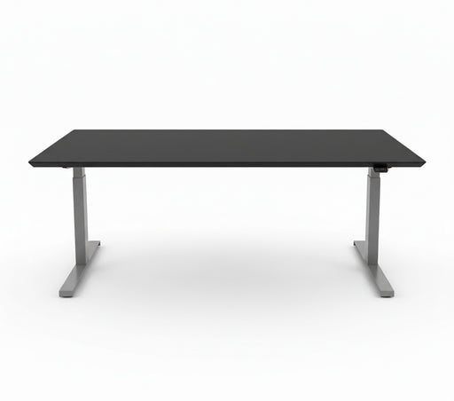 Fabriksnyt Linak Upgrade el hæve/sænkebord med sort linoleum bordplade og firkantet gråt pulverlakeret stel. Stellet er af den bedste kvalitet fra ...