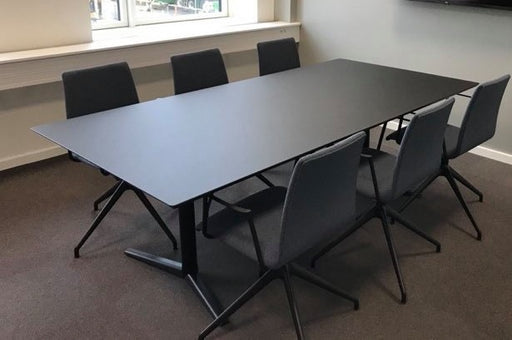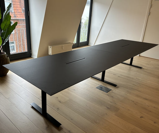 NYT Fumac Switch Executive mødebord / konferencebord med rektangulær sort linoleums bordplade. Bordet er designet af Busk+Hertzog i et elegant og e...