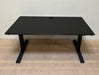 Scan Office el hæve/sænkebord med 140x80 cm. Sort linoleum bordplade monteret på antracit gråt stel. Bordet har integreret hul til kabelgennemgang.
